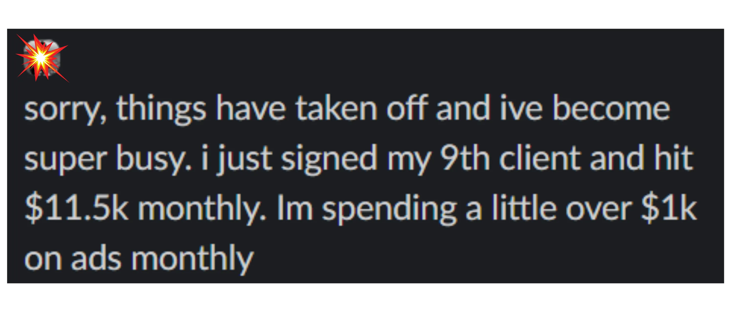 - Zero Sales or Marketing Background: Didn’t know how to generate leads or close clients, let alone run paid ads.