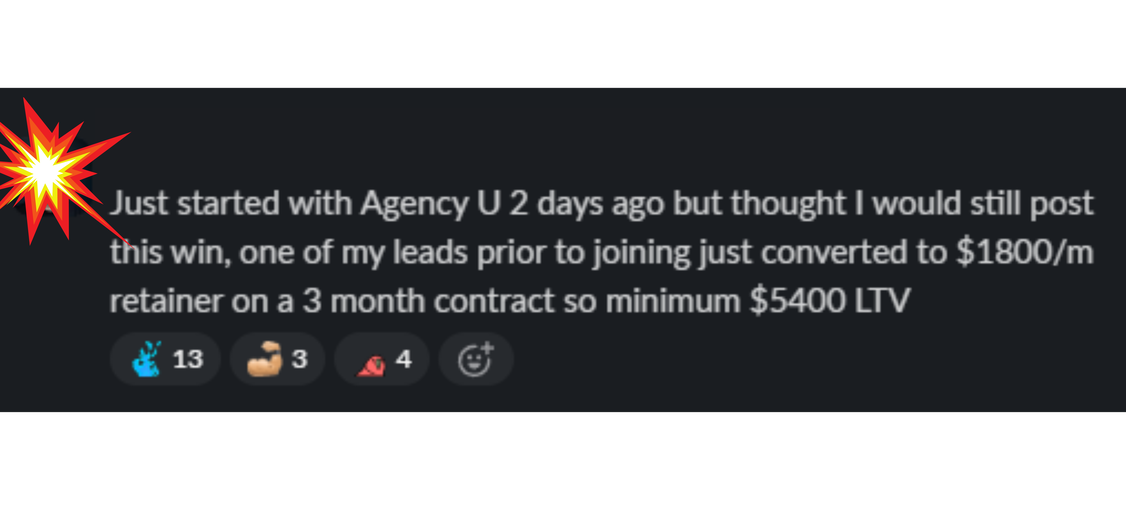 Agency U is a mentorship program to help agencies scale. The co-founders Gilberto and Austin have both scaled past $100k/month in their agencies which means they are able to beginner agency owners as well as established agency owners. We have agency owners across the spectrum ranging from beginners to agencies doing $100k+/months which means agencies will benefit from having a strong community of agency owners that have knowledge, skillsets and experiences to contribute to the group.